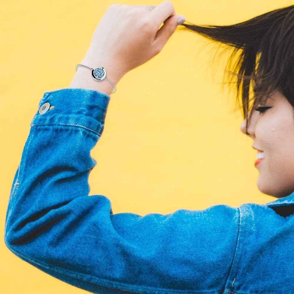 ttstar Essential Oil Diffuser Bracelet Stainless Steel Aromatherapy Locket Adjustable Diffuser Bracelet with 24pcs Refill Pads in 12 Colors Gift Set for Women Girls Mother’s Day Christma(Tree of Hope)